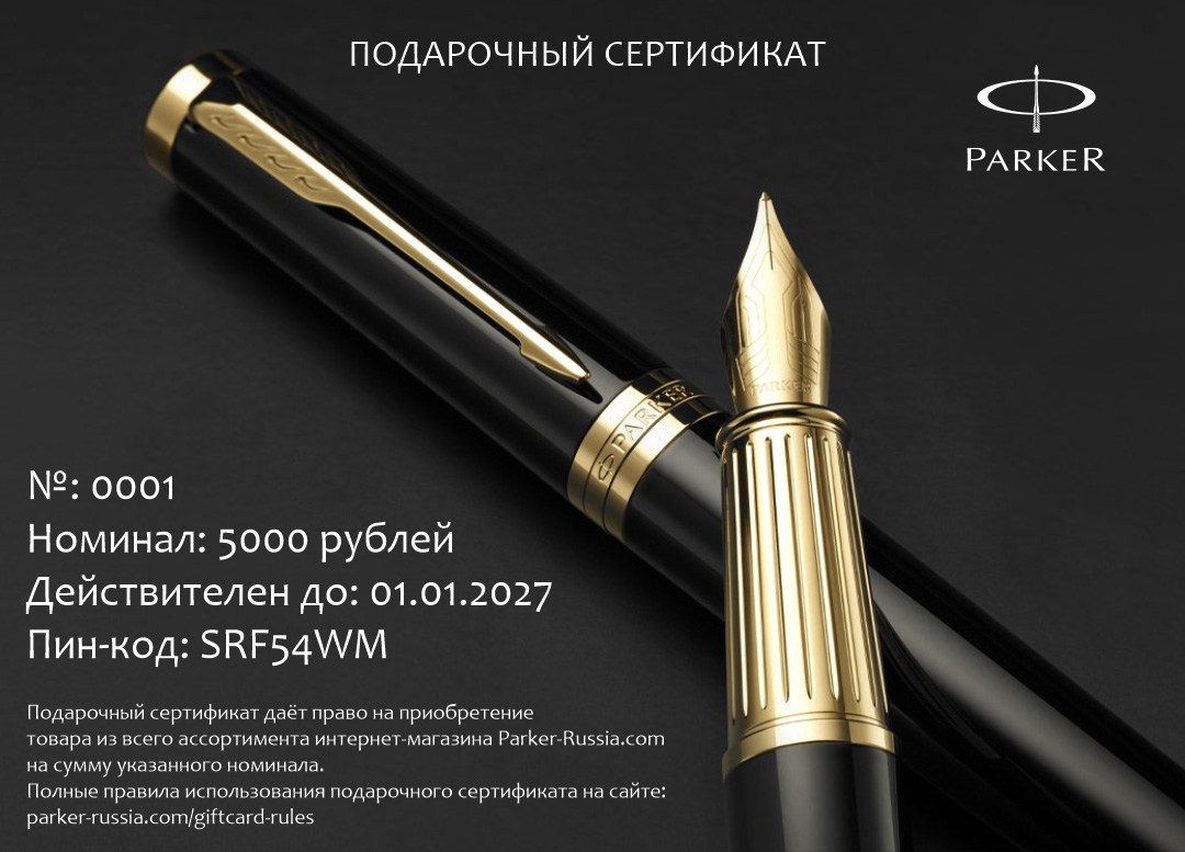 Подарочный сертификат Parker 7000 от официального дилера Parker в Саратове. Вы можете дополнительно заказать гравировку, которая подчеркнет Вашу оригинальность и придаст памятность статусному подарку. Все ручки Паркер поставляются в фирменном футляре.